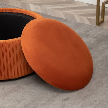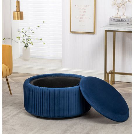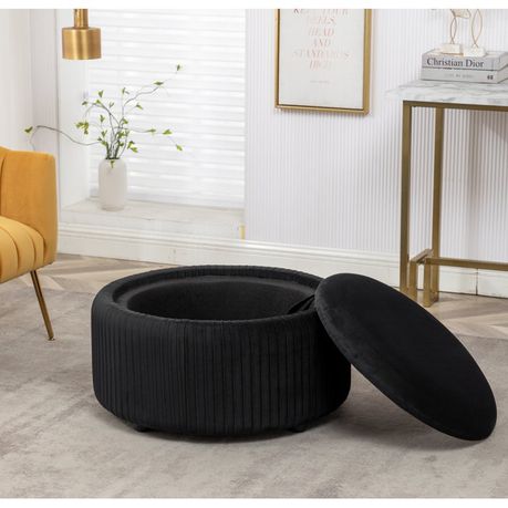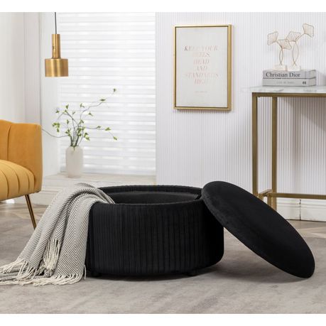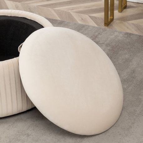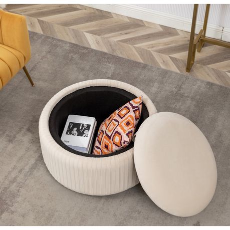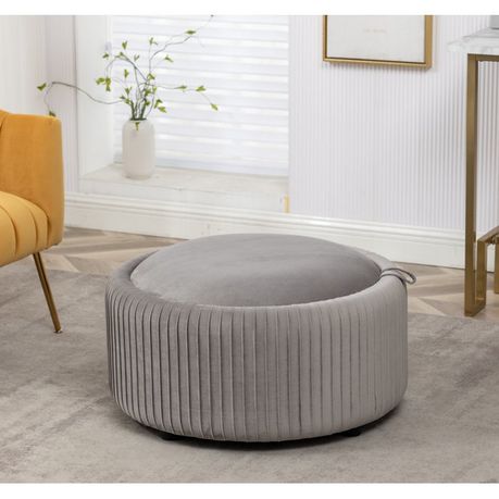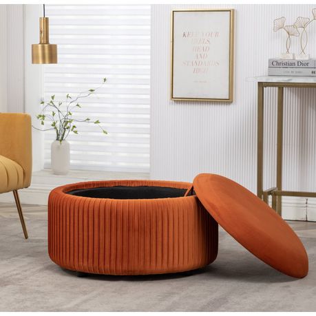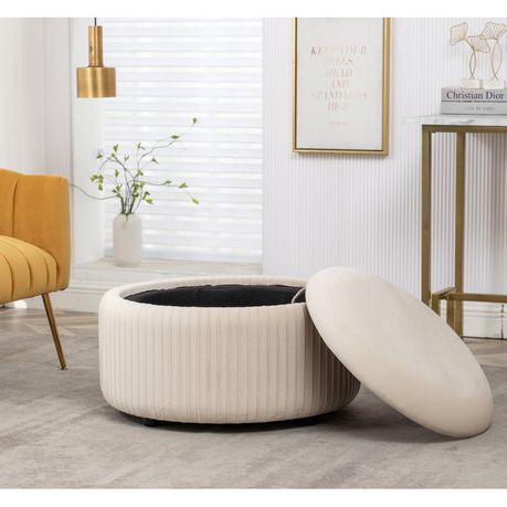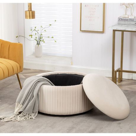 The storage ottoman with a mid-century modern style has a touch of light luxury.
