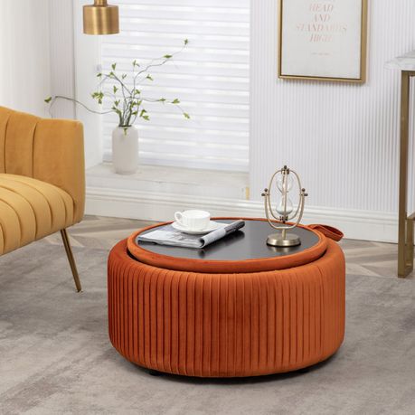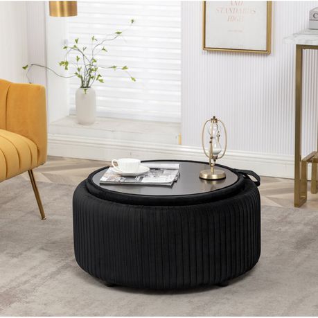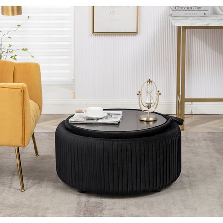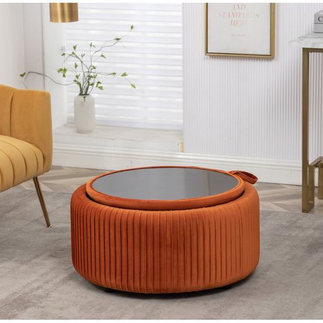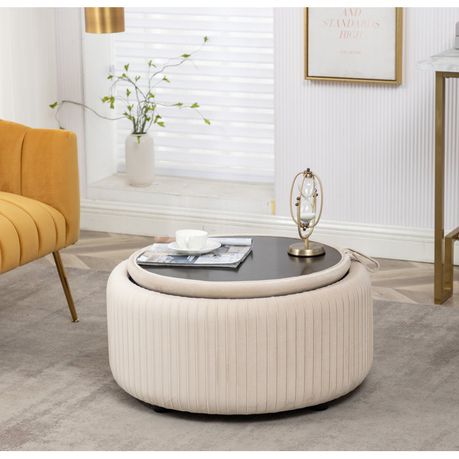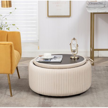 - This elegant multi-tasking ottoman can provide extra seating, extra storage, or serve as a coffee table.