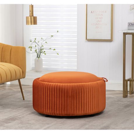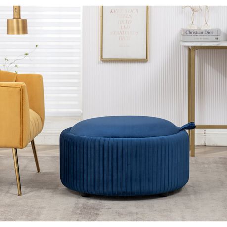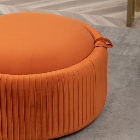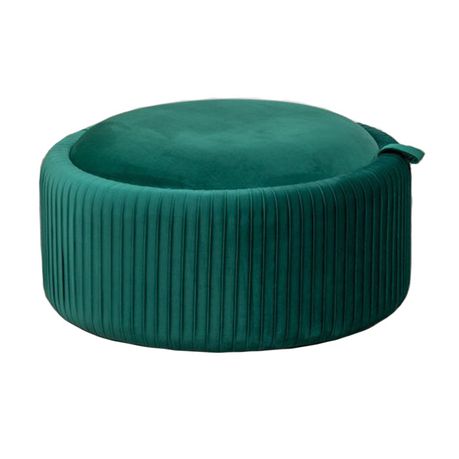 The unique pleated craftsmanship makes the round footstool itself more elegant and luxurious. Whether this is used as an ottoman, casual seating, a coffee table, or purely for decorative purposes this piece can be used in a multitude of ways.